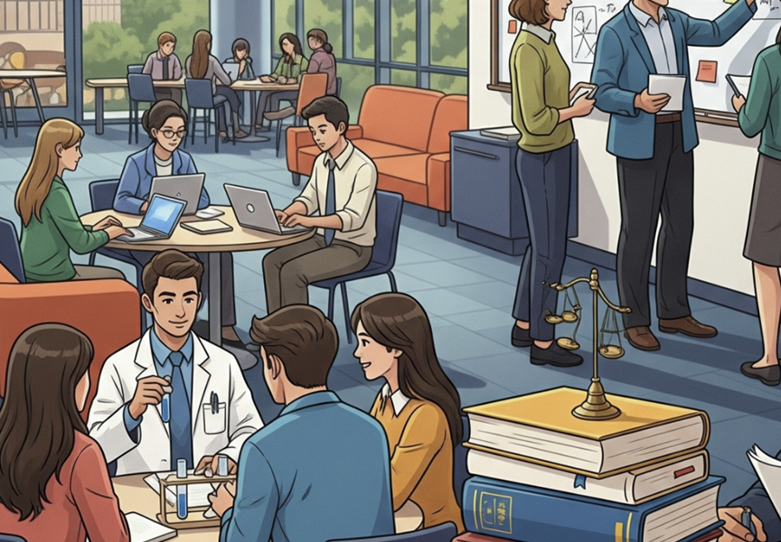 Para o curso de Direito, a sala de aula é mais do que um espaço físico. É um tribunal de debates, um fórum de ideias. A argumentação jurídica se aprimora no calor da discussão, no desafio intelectual lançado por um professor e na troca de perspectivas com os colegas. O contato presencial permite a criação de um senso crítico aguçado, algo fundamental para advogados e juízes.